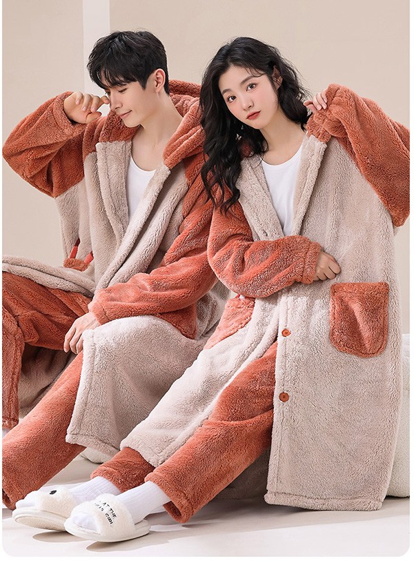 ペアパジャマ 冬 バスローブ ナイトガウン ペ