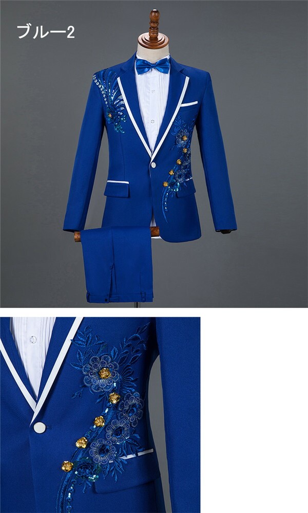 S~2XL 新作 演出 王子様 貴公子 大人 カラオケ 大会 演奏会 メンズ スーツ 赤 白 黒 ブルー 青 男性 スリムスーツ 大きいサイズ 舞台 衣装 ステージ 貴族服装 コスプレ クリスマ 演劇