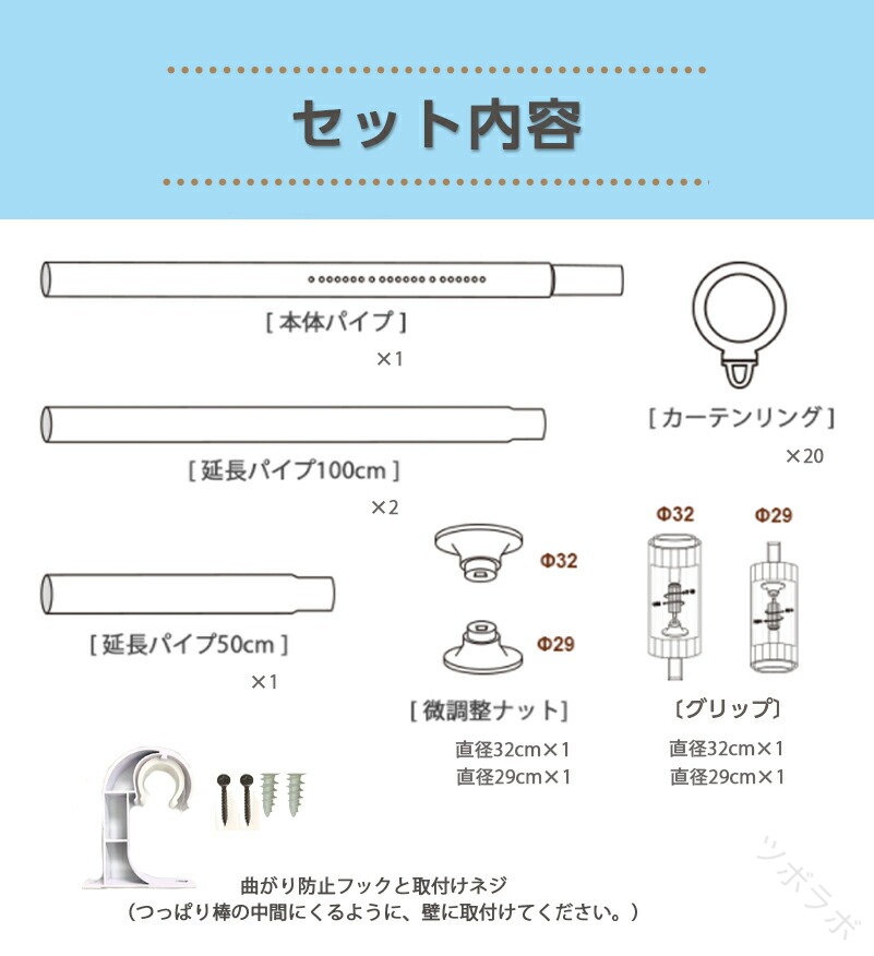 突っ張り棒 強力 長い 4m ツッパリ ホワイト ブラック 92-127cm 128-177cm 178-227cm 228-277cm 278-327cm 328-377cm 378-430cm