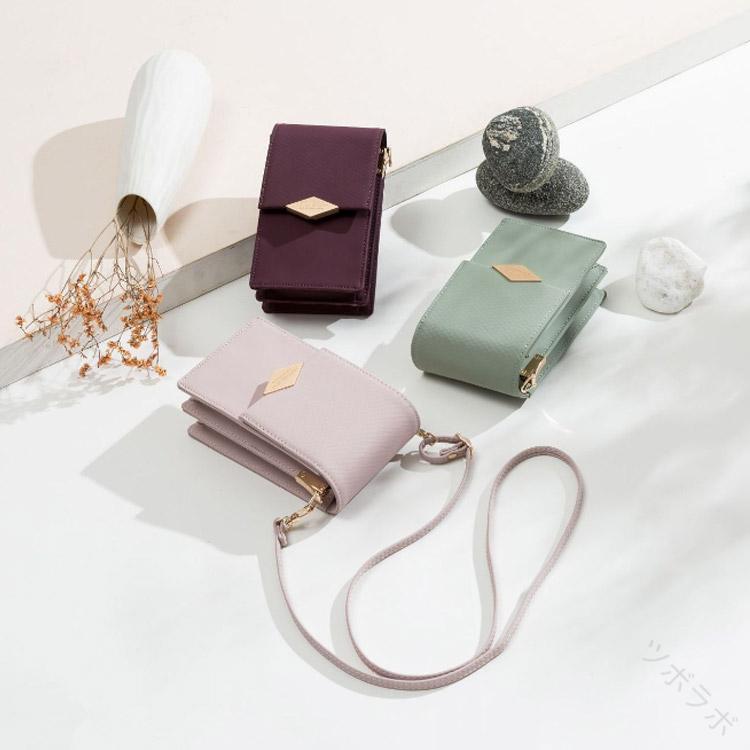 女性用大容量スマホポシェットレディース バッグ 小物 ブランド雑貨 人気 ワインレッド グリーン ブラック ベージュ ピンク1 ピンク2