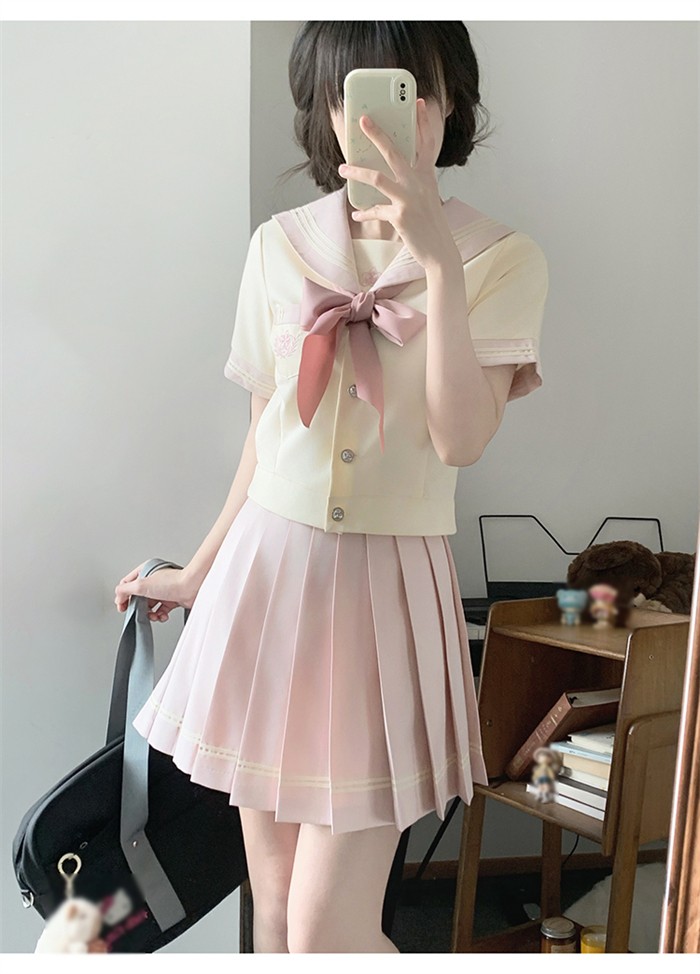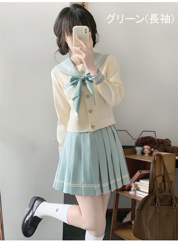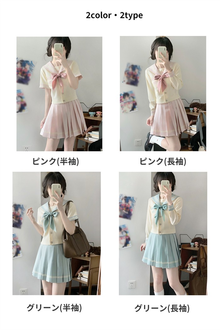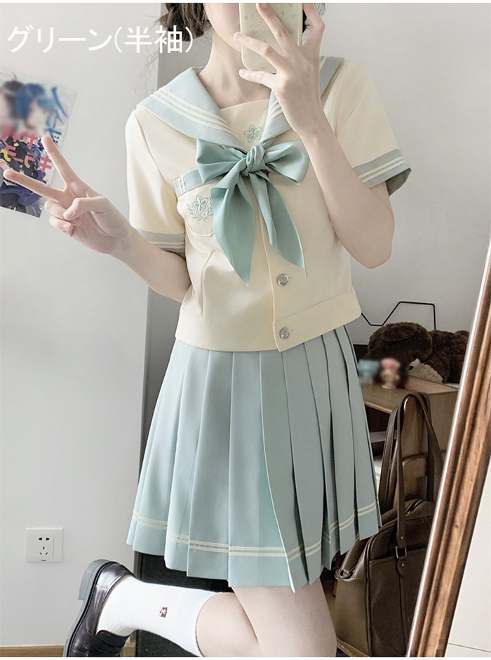 セーラー服 制服 上下セット スカート 学生服 セーラー服 早い者勝ち グリーン(半袖) ピンク(半袖) グリーン(長袖) ピンク(長袖) XS S M L 2L(XL) 3L(2XL)
