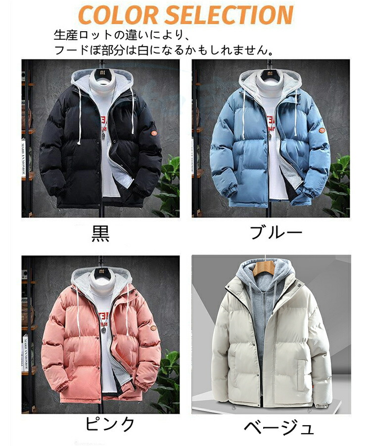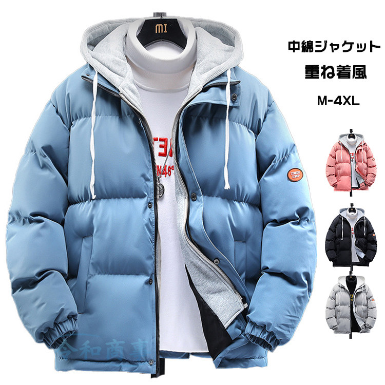 ダウンジャケット メンズ 重ね着風 中 メンズファッション 早い者勝ち M L XL 2XL 3XL 4XL 黒 ブルー
