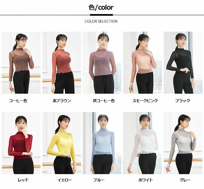 バレエ トップス 長袖 ストレッチメッ コーヒー色 赤ブラウン (灰系)コーヒ色 スモークピンク ブラック ワインレッド イエロー ブルー ホワイト グレー S M L XL XXL