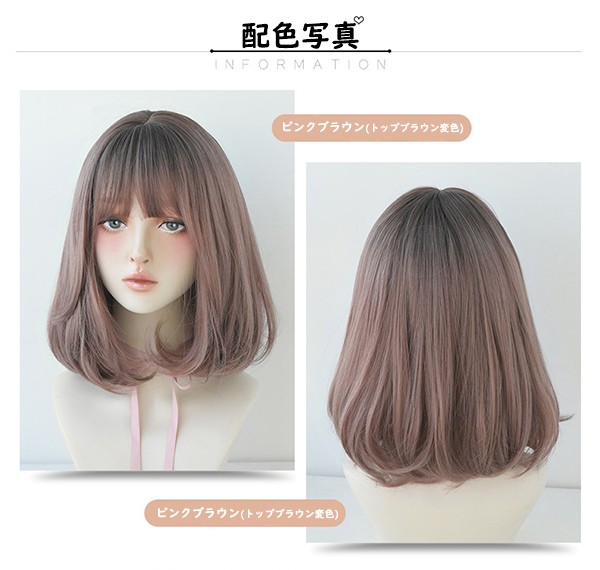 ウィッグ セミロング ボブ フルウィッ ウィッグ つけ毛 フルウィッグ 超目玉商品 ピンクブラウン チョコレート ライトブラウン ダークブラウン