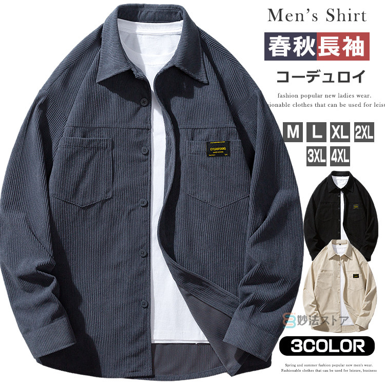 カジュアルシャツ コーデュロイシャツ メンズファッション 新作 M L XL 2XL 3XL 4XL 黒 グレー ベージュ