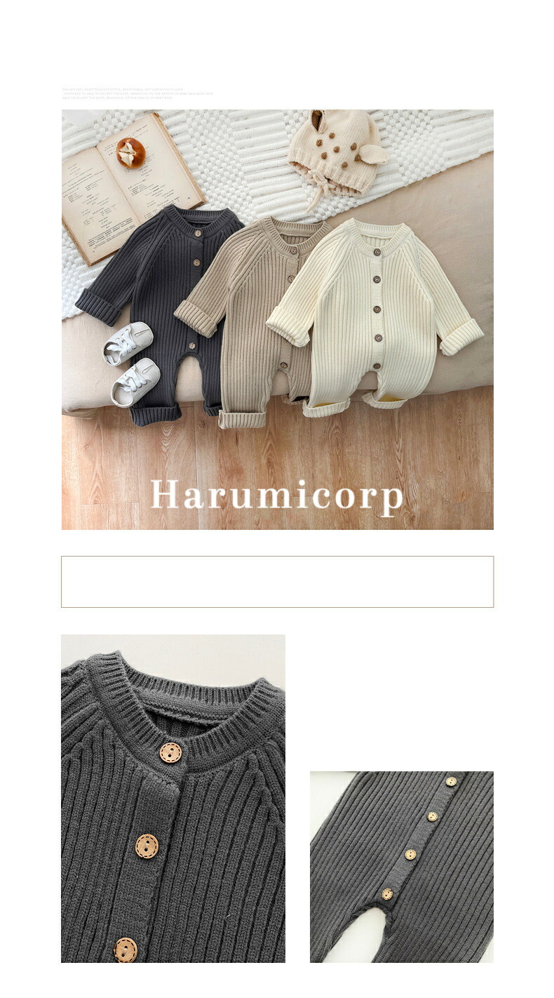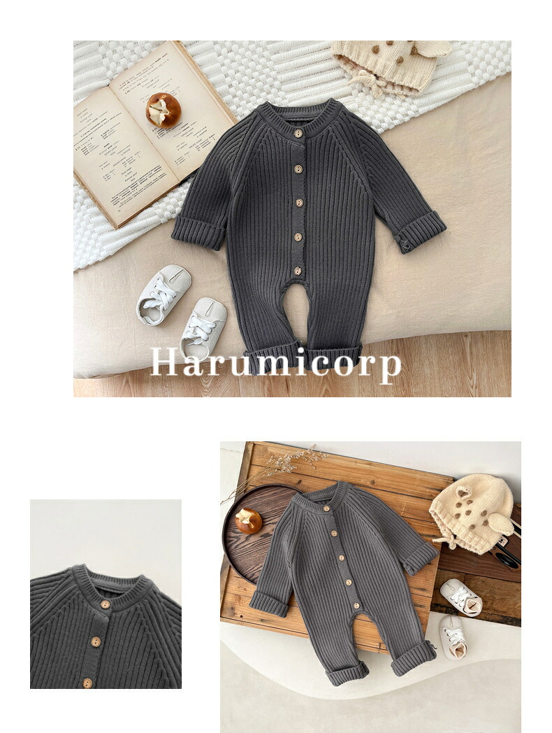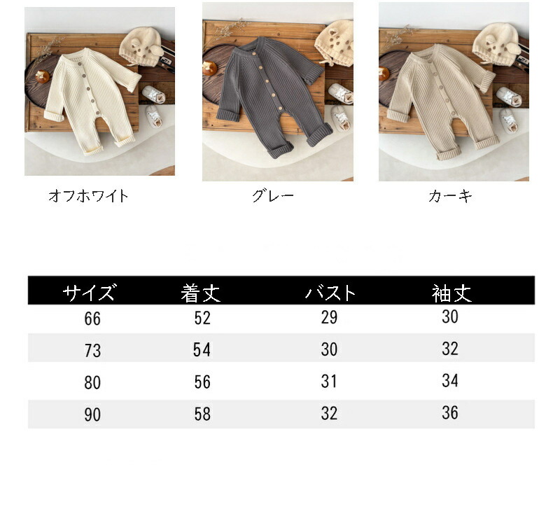 ロンパース ニット セーター春秋冬 ベ キッズ ベビー マタニティ 通販 カーキ グレー オフホワイト 66cm 73cm 80cm 90cm