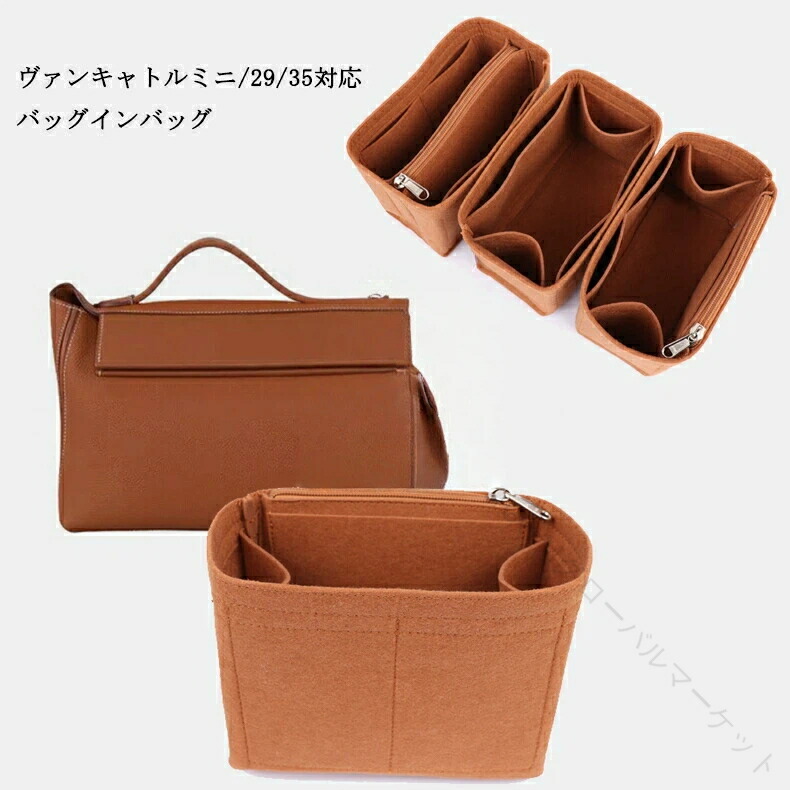 バッグインバッグ エルメス ヴァンキャトルミニ 29 35サイズ対応 自立 軽量 Hermes 24 24対応 レディース インナーバッグ ポリエステルフェルト製 ツールボックス型 仕切 フェルト素材