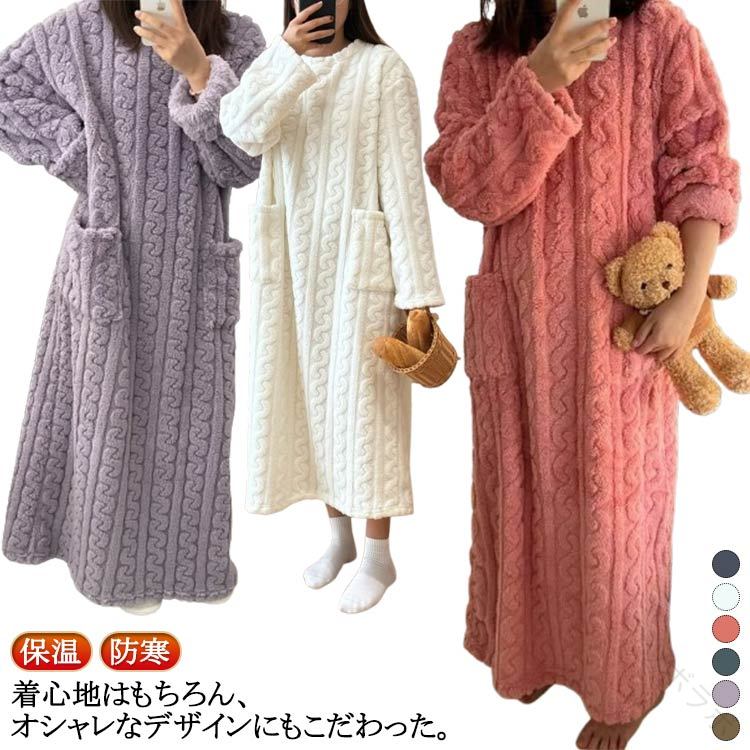 レディース 暖かい ルームウェア 厚手パジャマ ネグリジェ フリース 裏起毛ワンピース 長袖 マキシワンピース 秋冬 ワンピース パジャマ もこもこ 防寒着 くつろぎウェア おしゃれ