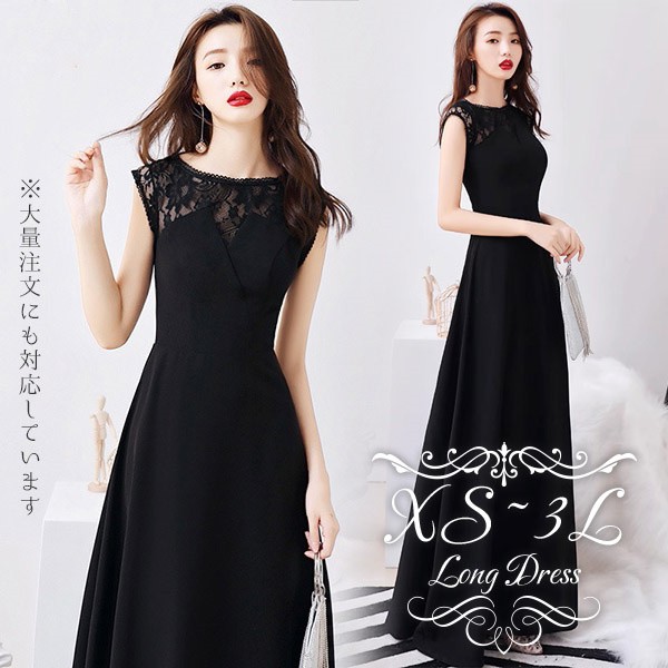 ロング ドレス 演奏会 黒 ノースリーブ 結婚式 パッド付き ワンピース フォーマル ワンピ お揃いドレス 衣装 レース 丈 着痩せ おしゃれ かわいい きれいめ 20代 40代 パーティ 発 30代
