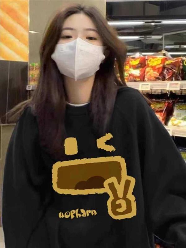 キャラクター パーカー レディース ブラック ゆったり ポリエス 大きいサイズ アニメ 秋冬 プリント 裏起毛 長袖 ラウンドネック