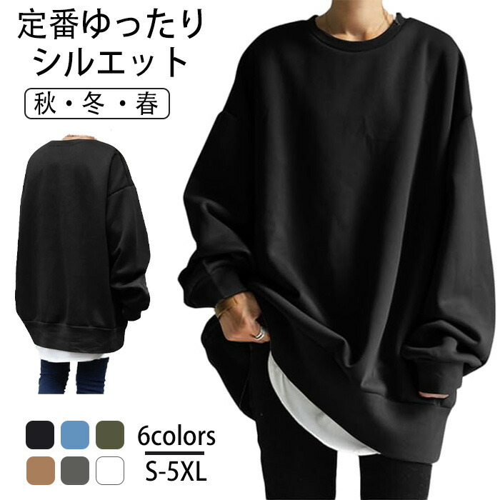 定番ゆったりシルエット ロングトレーナー レディース ゆったり 大きいサイズ 体型カバー トップス トレーナー 長袖 薄手秋冬 部屋着 秋冬春 無地 カジュアル ファション 快適着心地 オーバーサイズ