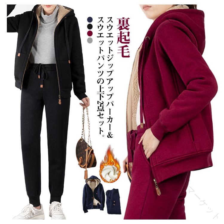 スウエット 上下 2点セット 裏起毛 パーカー ジップアップ 長袖 トップス フード付き スウエットパンツ レディース 秋冬 裏ボア セットアップ ジャージ スエット 部屋着 厚手 あっ ルームウェア