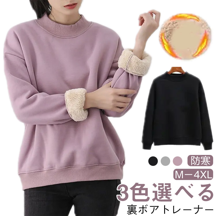 裏ボアで保温力抜群あったか厚手トレーナーは体型を自然にカバーし寒い季節に最適な快適着用感を実現