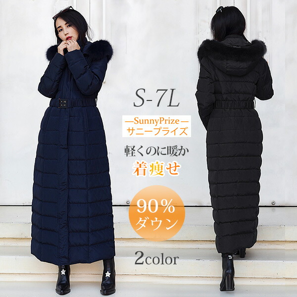 90%ダウン ダウンコート 超ロング Aライン 大きいサイズ 7L 6L 5L 4L 3L 黒 帽子付きファー付き ベルド付き ベンチコート レディース ダウンジャケット アウター ロング 防寒性抜群