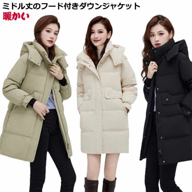 軽量 ダウンコート ダウンジャケット ロング ミドル丈 フード付き ライトダウン キルティング コート アウター 秋冬 全12色