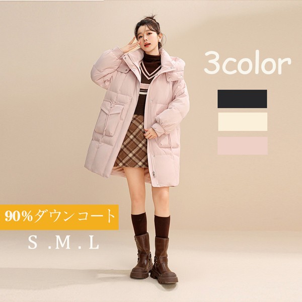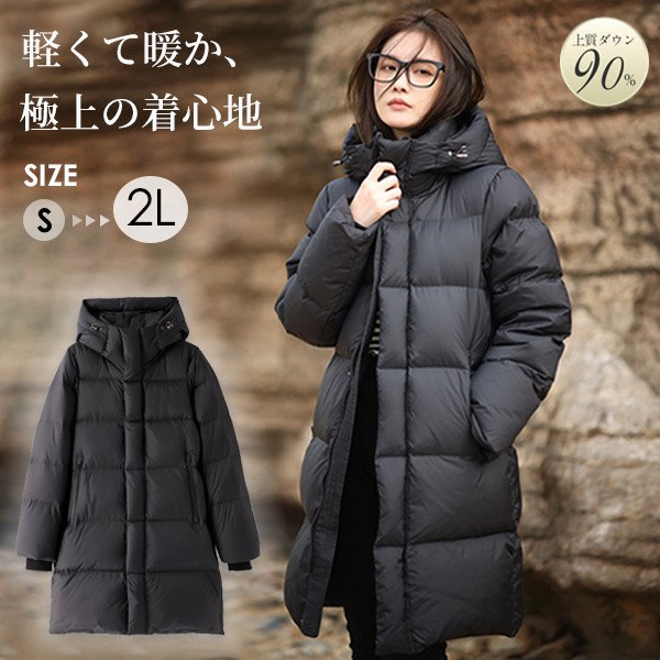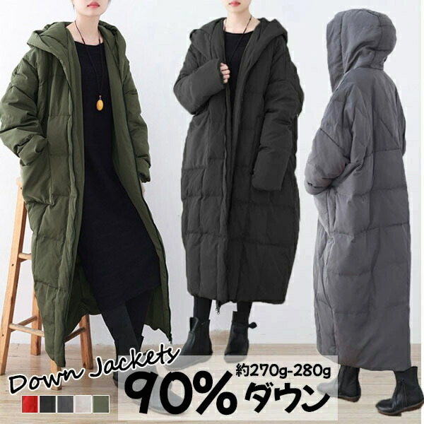 90%ダウンダウンコートレディースアウターロングコートオーバーサイズゆったりビッグシルエットダウンジャケットフードありポケット付き暖かい防寒かわいいおしゃれカジュアルきれいめブラックグレーホワイトレッ