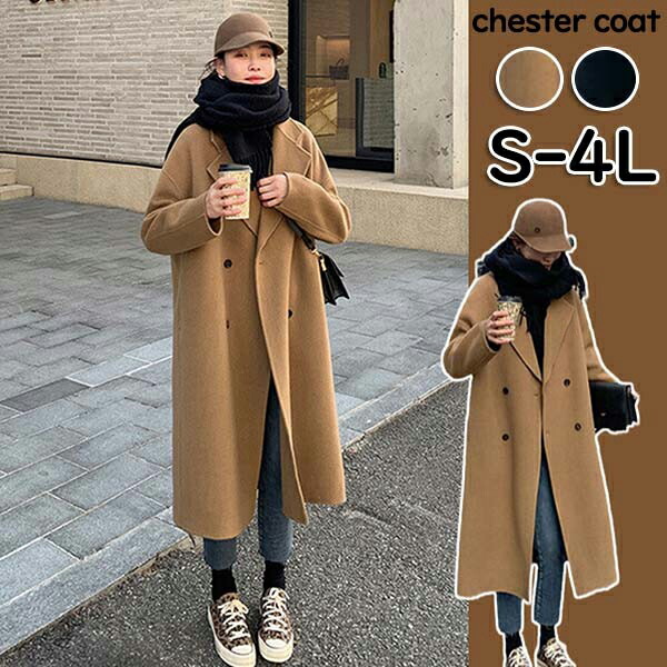 チェスターコート レディース 冬 大きめ ロング 学生 スプリングコート 春コート 大きいサイズ キャメル ブラック ロング丈 アウター 韓国 カジュアル シンプル 防寒 フォーマル あっ 秋冬物