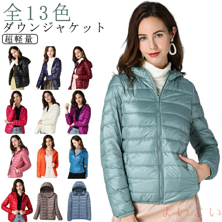 ウルトラライト ダウンジャケット 無地 春 レディース ダウン 防寒 軽量 大きいサイズ 防風 シンプル 冬 収納袋付き コート