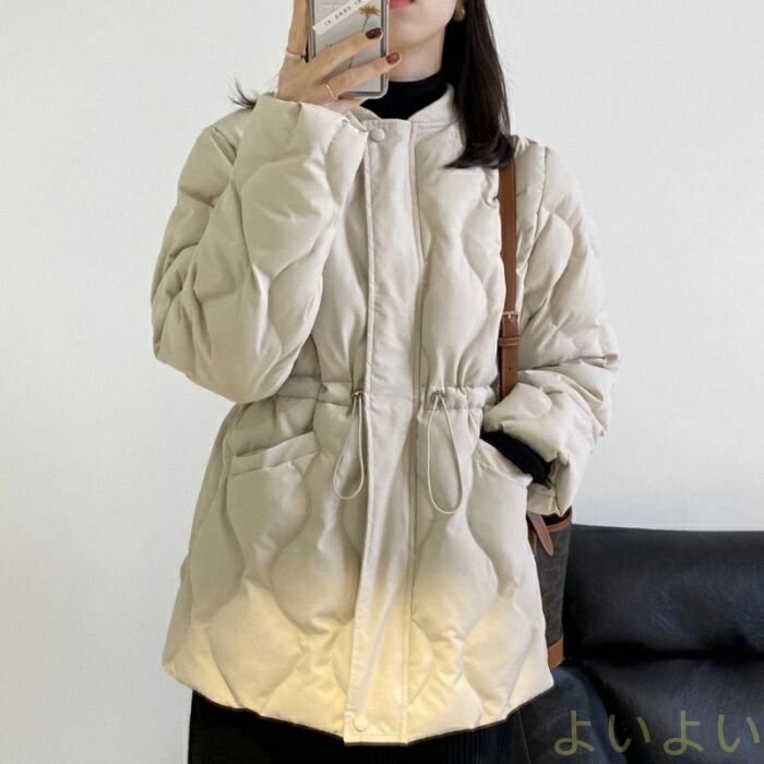 中綿コート レディース 無地 秋冬アウター ジッパー ポケット ドローストリングレディースファッション コート ジャケット 防寒