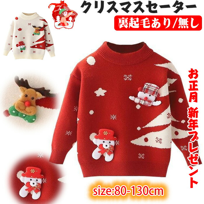 クリスマスセーター 子供 ニットセーター キッズ 男の子 女の子 赤サンタクロース トナカイ 鹿柄 秋冬 裏起毛 お正月 新年ギフトレッド80-130