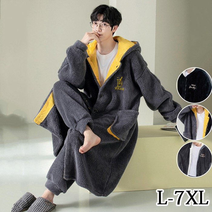 ガウン メンズ パジャマ 冬 長袖 大きいサイズ もこもこ ナイトガウン ルームウェア 寝巻き