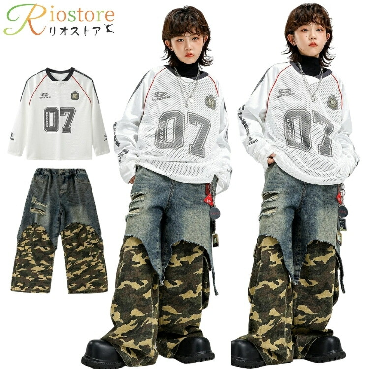 トップス 迷彩パンツ ダンス衣装 セットアップ ダンスウェア 衣装 パンツ 冬 秋冬 トップスター 白 緑 ダメージ 男女 HIPHOP 韓国 ダンス ストリート系 デザイン 普段着 発 ヒップホップ