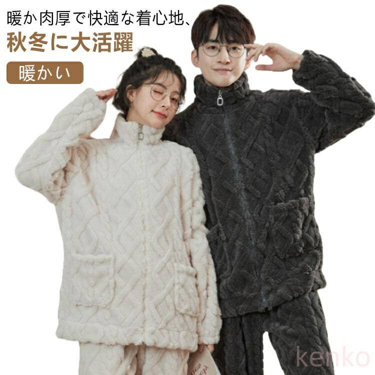 着る毛布 パジャマ 前開き スタンドカラー 部屋着 長袖 ルーウェア 暖かい 上下セット ふわふわ もこもこ ジップアップ 大きいサイズ メンズ レディース 立ち襟