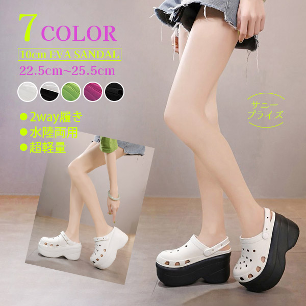 クロッグサンダル レディース 厚底 EVA 2way ヒール9cm サボサンダル 水陸両用 滑り止め 軽量 グミ足感 美脚 バックバンド付き 防水 通気性 おしゃれ 海 リゾート プール カジュアル