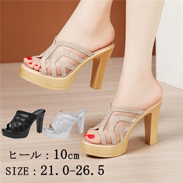 サンダル かかとなし つま先なし 12サイズ 大きいサイズ ヒール10 ハイヒール 透け感 涼しい オープントゥ 美脚 海 シューズ ヒールサンダル レディース 靴 銀 黒 21.0 2 金
