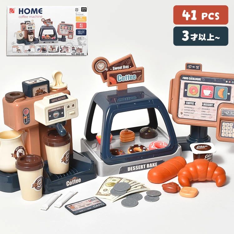 おもちゃ コーヒーメーカーセット お店屋さんごっこ レジスター カフェ 室内 おままごとセット クリスマス 孫 こどもの日 遊び 41点セット コーヒーショップ 知育玩具 安心 安全 音楽