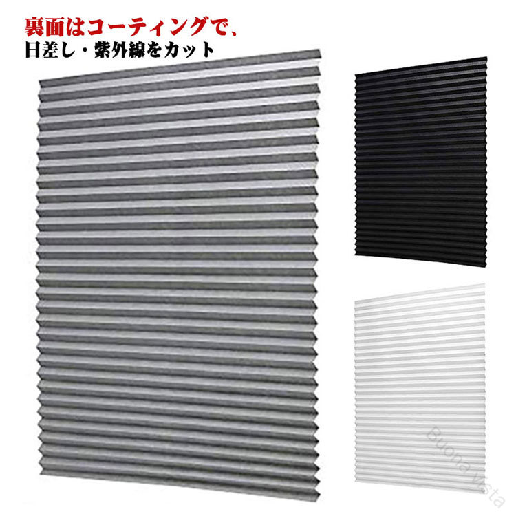 カーテン UVカット 完全遮光 カット可能 粘着式 ブラインド プリーツカーテン 無地 折りたたみ 不織布 日除け 長さ調整可能 カーテンクリップ付き オフィス リビング 窓用簡単取り付け 遮熱 寝室