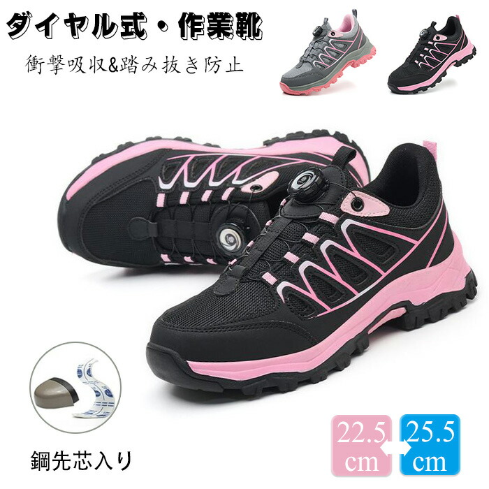 安全靴 レディース ダイヤル式 作業靴 軽量 疲れない おしゃれ 通気性 スニーカータイプ 衝撃吸収 釘踏み抜き防止 鋼先芯入り 耐滑 疲れにくい 耐摩耗 ピンク セーフティシューズ 厚底