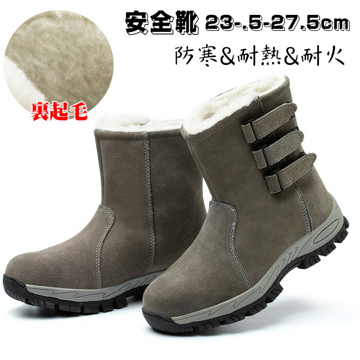 安全靴 メンズ レディース ボア付き 安全シューズ男女兼用 作業靴 長靴 冬用 半長靴 防寒用つま先保護 保温 防水 強い耐摩耗性マジックテープ 裏起毛 ハイカット 耐熱 耐油 工事現場 軽量 耐火
