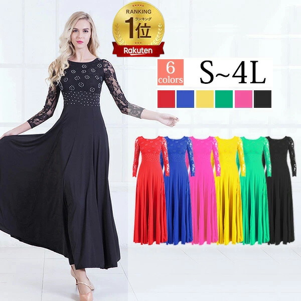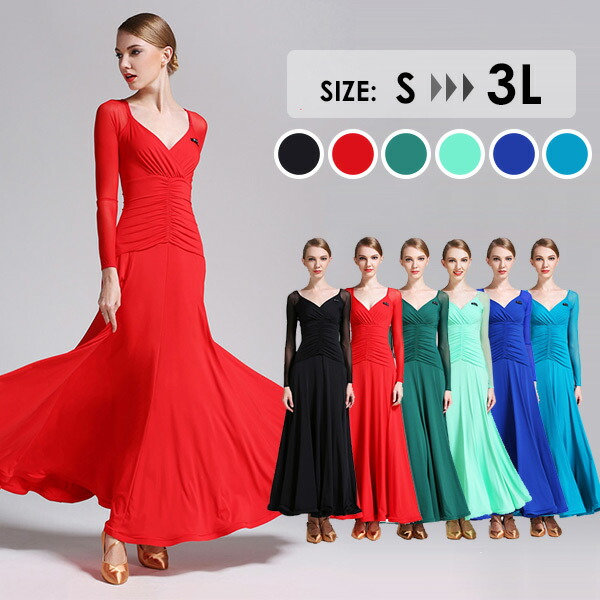 社交ダンス ドレス 初心者 練習着 競技着 社交ダンス衣装 ワンピース 透け感 長袖 ストレッチ 開場ドレス モダンドレス スタンダード レッスン着 大きいサイズ 発表会用 デモ用 ワルツ専用ドレス