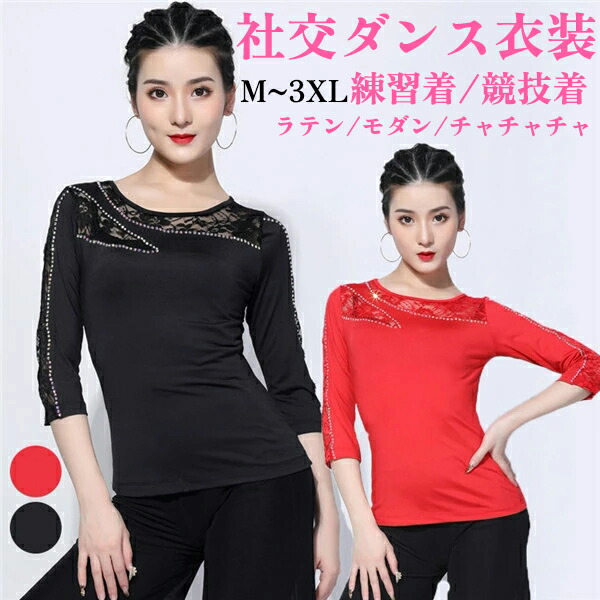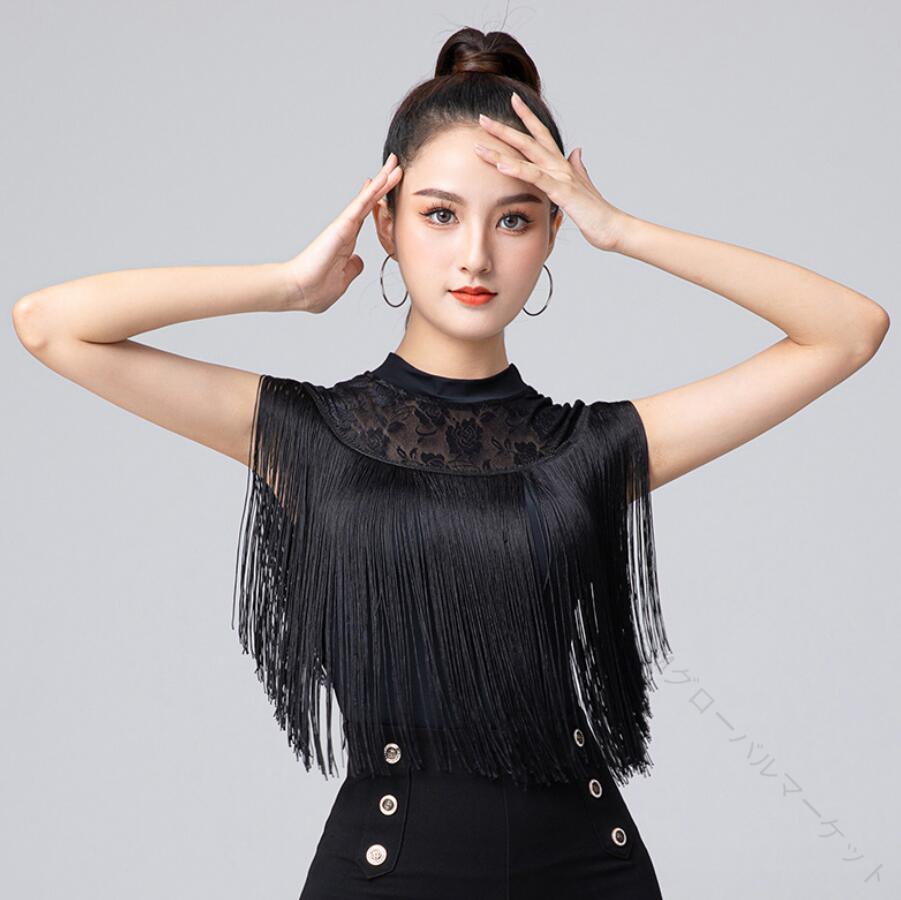 社交ダンス トップス 女性 社交ダンス衣装 レディース 上着 レース 競技着 練習着 モダン ラテン レッスンウェア 練習競技着デモ用 発表会用 ワルツ チャチャチャ 演出着 ブラック 黒 ステージ