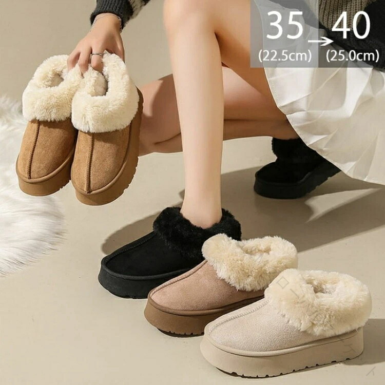 ムートンブーツ レディース ムートンシューズ 厚底 4cmヒール スリッポン フルームシューズ フェイクファー もこもこ 厚底靴 裏ボア 裏起毛 歩きやすい あったか 厚手 秋冬用 防寒シュ 防寒対策