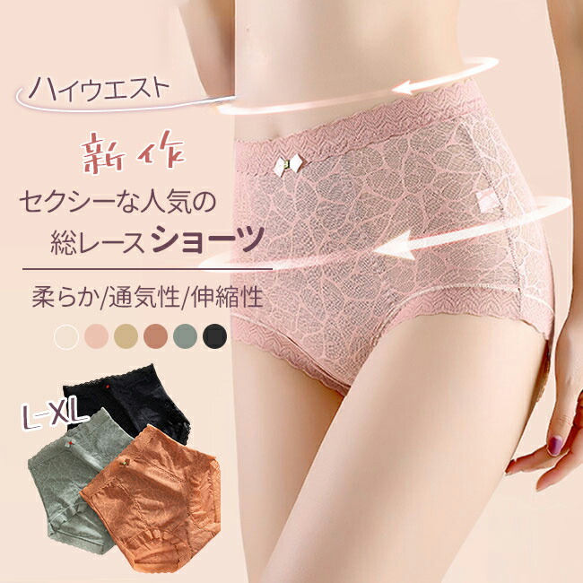 シームレス 深ばき ハイウエスト 無地 大きいサイズあり レディース レース 深め パンツ 綿 総レース セクシー お腹まで包む コットン 下着 深履き 美尻ショーツ 柔らか 通 女性用