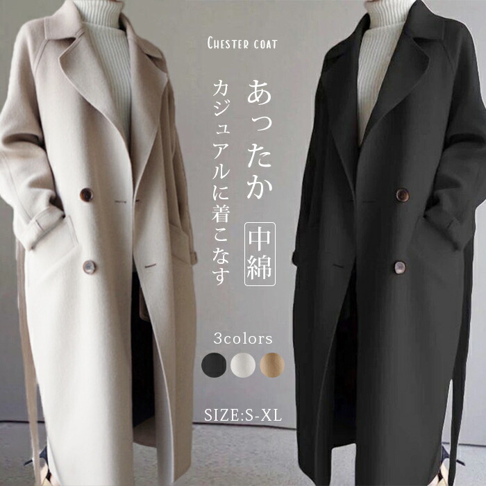 抜け感漂うゆったりチェスターロングコート 厚手 防寒 アウター 大きいサイズ 冬 防寒対策 通勤♪