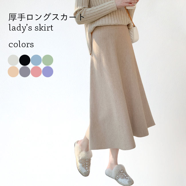 エレガントな広い裾幅 レディース厚手ニットスカート