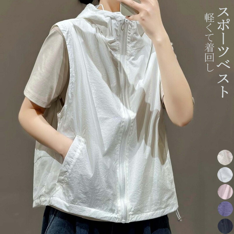 ベスト パーカー レディース スポーツベスト 夏 熱中対策 涼感 アウトドアベスト ファスナー フード付き スポーツ アウトドア レジャー 軽量 通気 速乾 お釣り 山歩き 多機能 登山 撮影