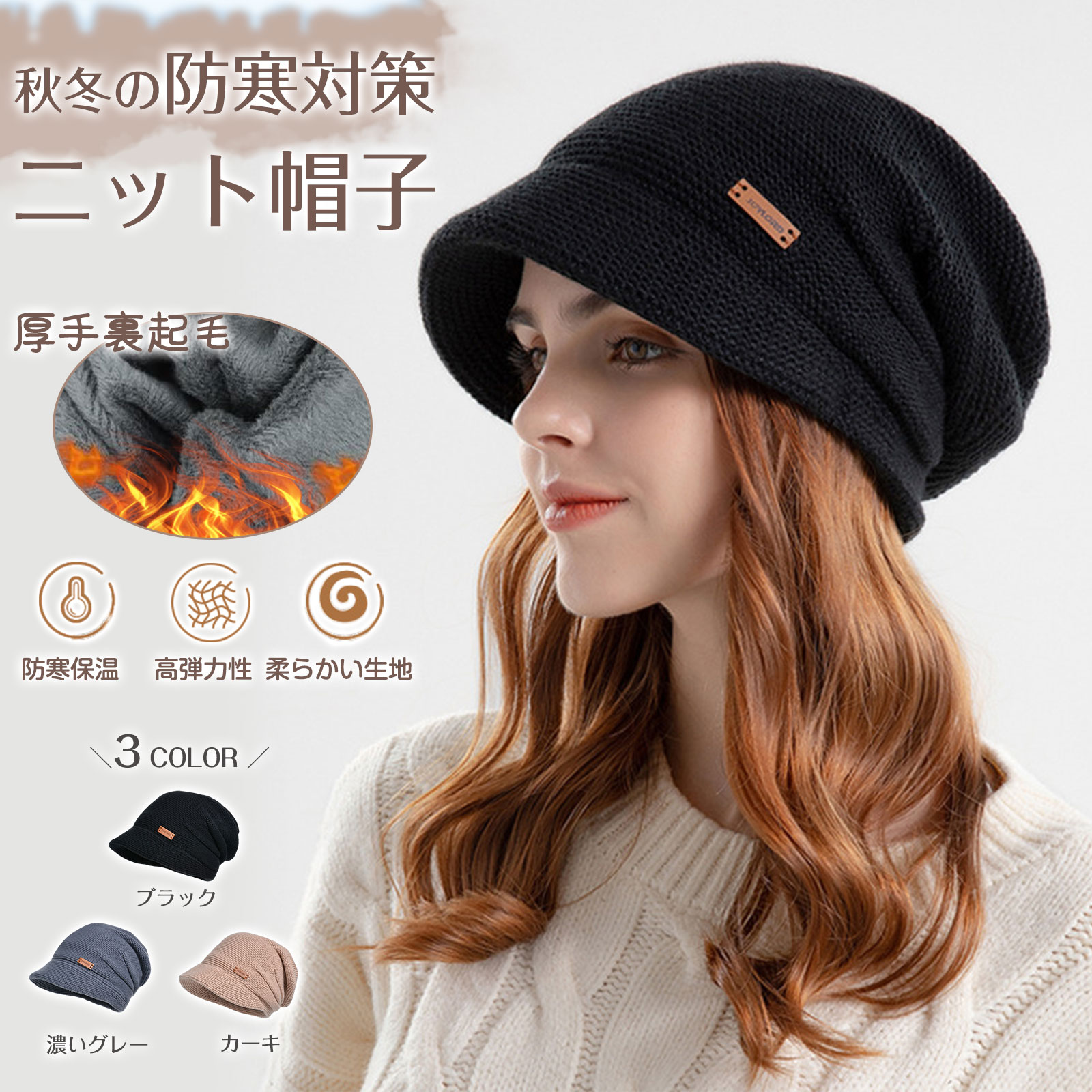 帽子 レディース 秋冬にぴったり 裏起毛の二重保温であったか つば付きで小顔見え 柔らかく締め付け感ゼロ 通勤や散歩にも使える万能ニット帽