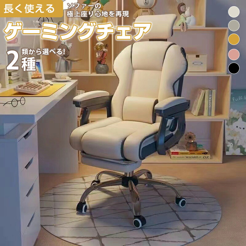 ゲーミングチェア オフィスチェア チェア 椅子 イス オットマン付き パソコンチェア 高さ調節機能 昇降式ヘッドレスト 回転式ヘッドレスト ランバーサポート PCチェア フットレスト リ デスクチェア