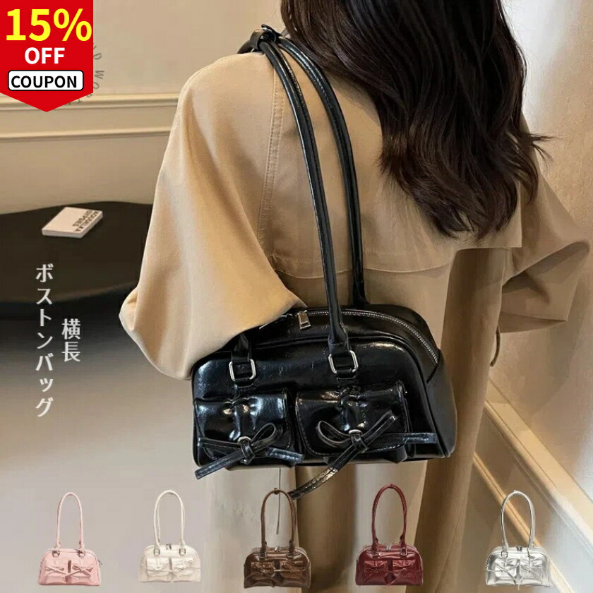 スクールバッグ 肩掛けバッグ 鞄 ハルジオ 横長バッグ 横長 横長ボストン 幅広 可愛い 旅行 ちょう結び 財布 撥水 脇の下バッグ 人気 シンプル ダブルポケットスクエア型 カバン 脇下