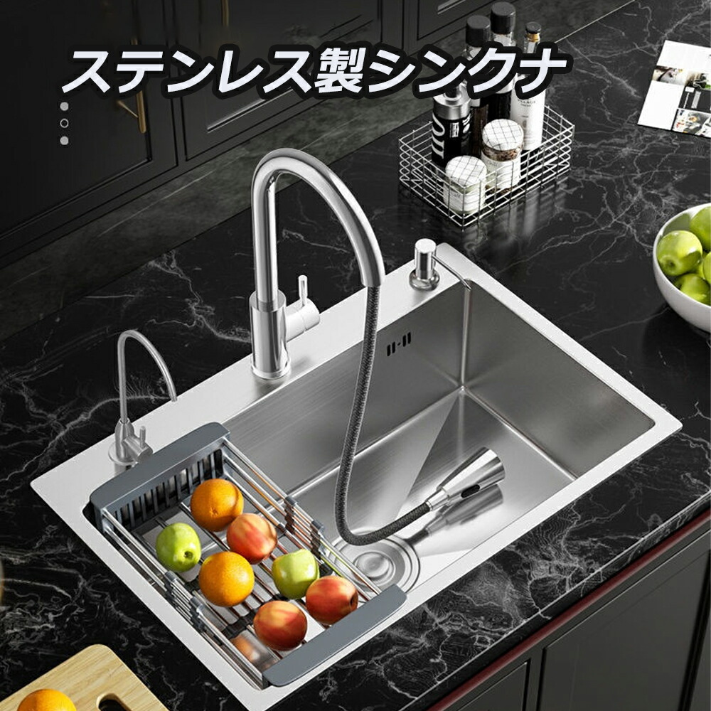 新着 2024 キッチンシンク ステンレスシンク タンク 一槽シンク キッチン流し台 耐摩耗 大判