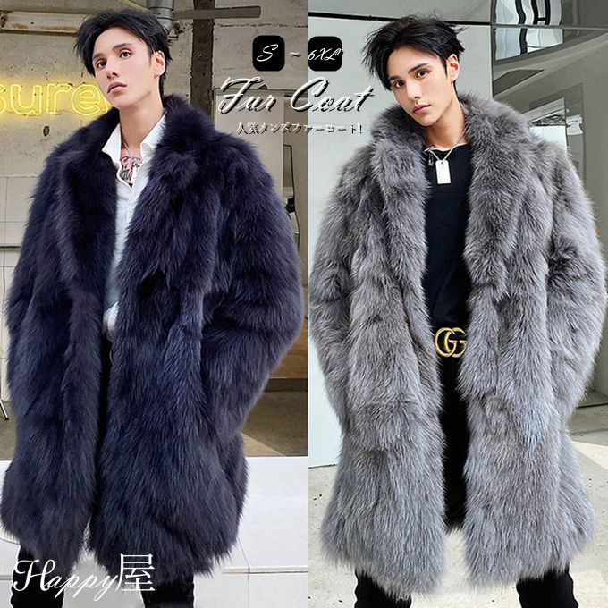 ファーコート メンズ 厚手 毛皮コート フォックス ロングコート フェイクファー 無地 冬物 暖かい カジュアル ジャンパー アウター 贅沢 上品 大きいサイズ ふわふわ