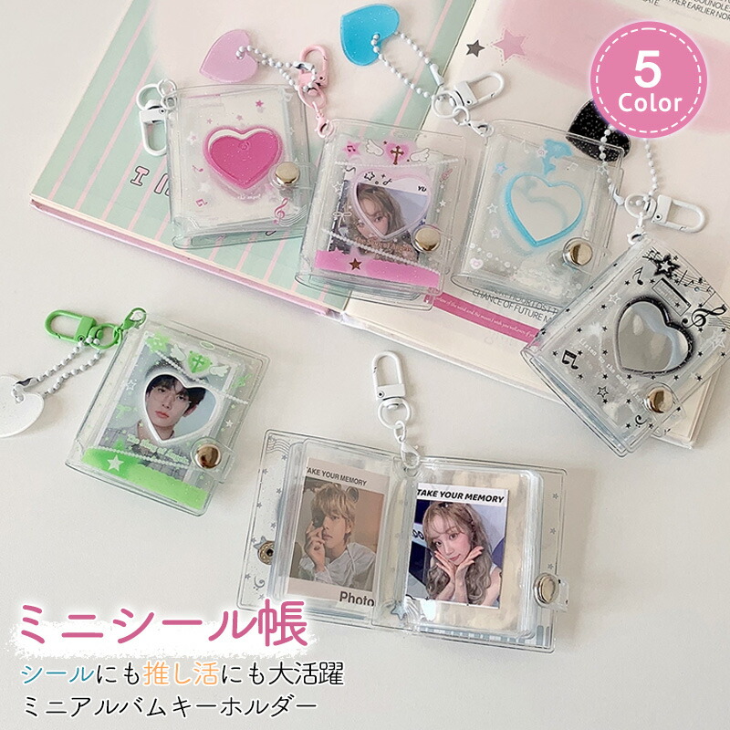 ミニアルバム ミニシール帳 キーホルダー付き シール台紙 ミニフォトステッカー用 キーホルダーフォトアルバム ミニ インタースティシャルポケット 彼氏 彼女 ギフト スクラップブック