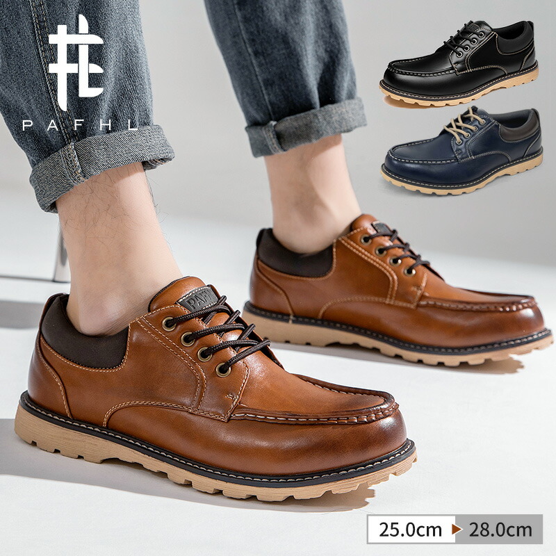 PAFHL カジュアルシューズ メンズ スニーカー レースアップシューズ デッキシューズ モカシン ビジネス PU革靴 おしゃれ カジュアル 定番 軽量 ステッチ 3E幅広 25.0cm-28. 防滑