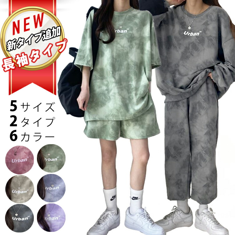 レディース タイダイ柄 ルームウェア セットアップ 上下セット 半袖 長袖 半ズボン 長ズボン 2タイプ タイダイ ゆったり オーバーサイズ お洒落 普段着 タイダイルームウェアセッ ワンマイルウェア
