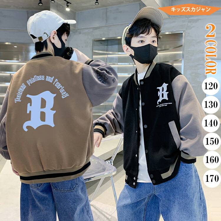 【20人に一人無料】 キッズジャケット スカジャン 秋冬 キッズアウター 長袖 上着 ポケット付き プリントロゴ ゆったり 暖かい 防寒 寒さ対策 普段着 男の子 女の子 男女兼用 韓国風