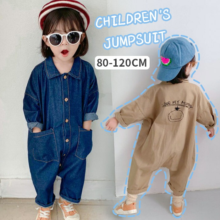 オールインワン デニム ベビー服 キッズ オーバーオール ボディースーツ カバーオール 襟付き シャツ 長袖 ロング丈パンツ 子供服 つなぎ 通園着 入園式 シンプル 夏 秋 ポケット付き 一体型 春